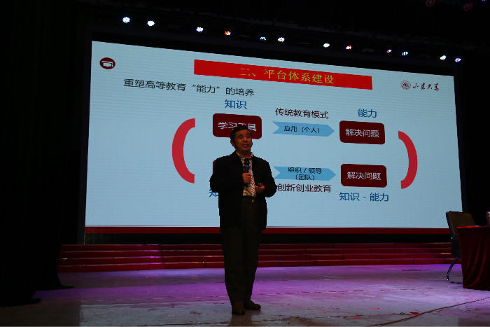 陈言俊教授从“国家创新战略”“什么是创新、创客、创业”等方面入手,阐明了国家为什么要提倡创新,以及在校老员工如何培养创新能力等内容。陈教授以山东大学员工参加创新项目、创新竞赛、创业活动学习等为案例,讲解了老员工“怎样创新”“创新能力如何培养”“创新能力的锻炼途径和方法”等问题。他强调,创新需要有浓厚的兴趣和爱好,要乐于奉献,要将好的想法落实到实践操作过程中。他希望同学们把认知实习、工程素质与能力训练、专业实习与课程设计、毕业实习与毕业设计等各个实践环节作为一个整体来规划,系统进行创新能力的培养和锻炼。