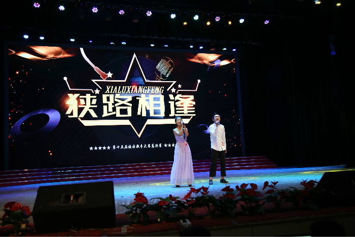 伴随着一首激昂的歌曲《我们都是追梦人》,各位参赛选手精彩亮相。比赛分为狭路相逢、反败为胜、锦上添花、巅峰对决四个环节,10名参赛选手按照抽签顺序依次上场,将精心准备的歌曲演唱的淋漓尽致,不仅体现了娴熟的唱功,更体现了华宇学子的青春风采。