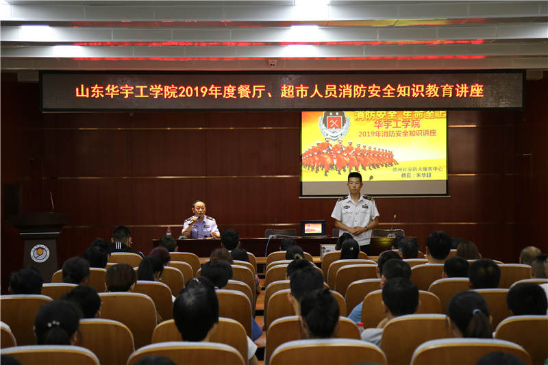 为增强校内餐厅超市营业网点从业人员防火意识,掌握消防安全知识,加强安全管理,5月23日下午保卫处邀请德州市社安防火中心朱华超教官为主讲人,协同后勤处组织校内餐厅、超市、营业网点150余人在学术报告厅开展了消防安全专题讲座。