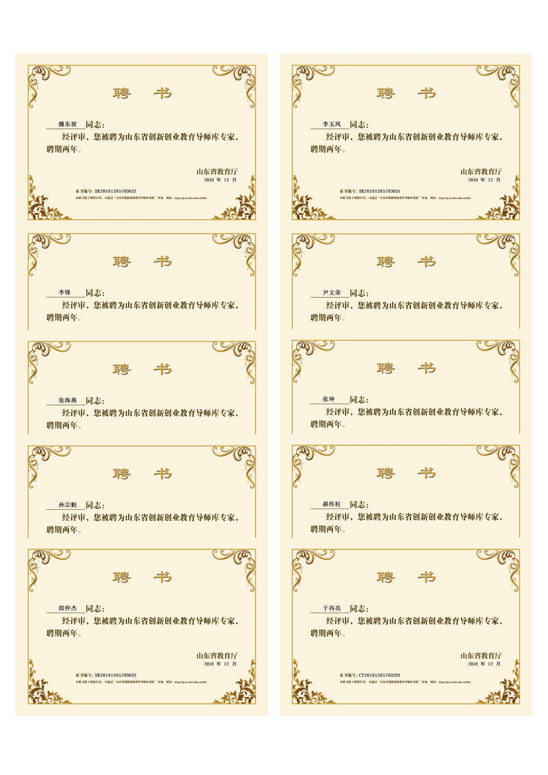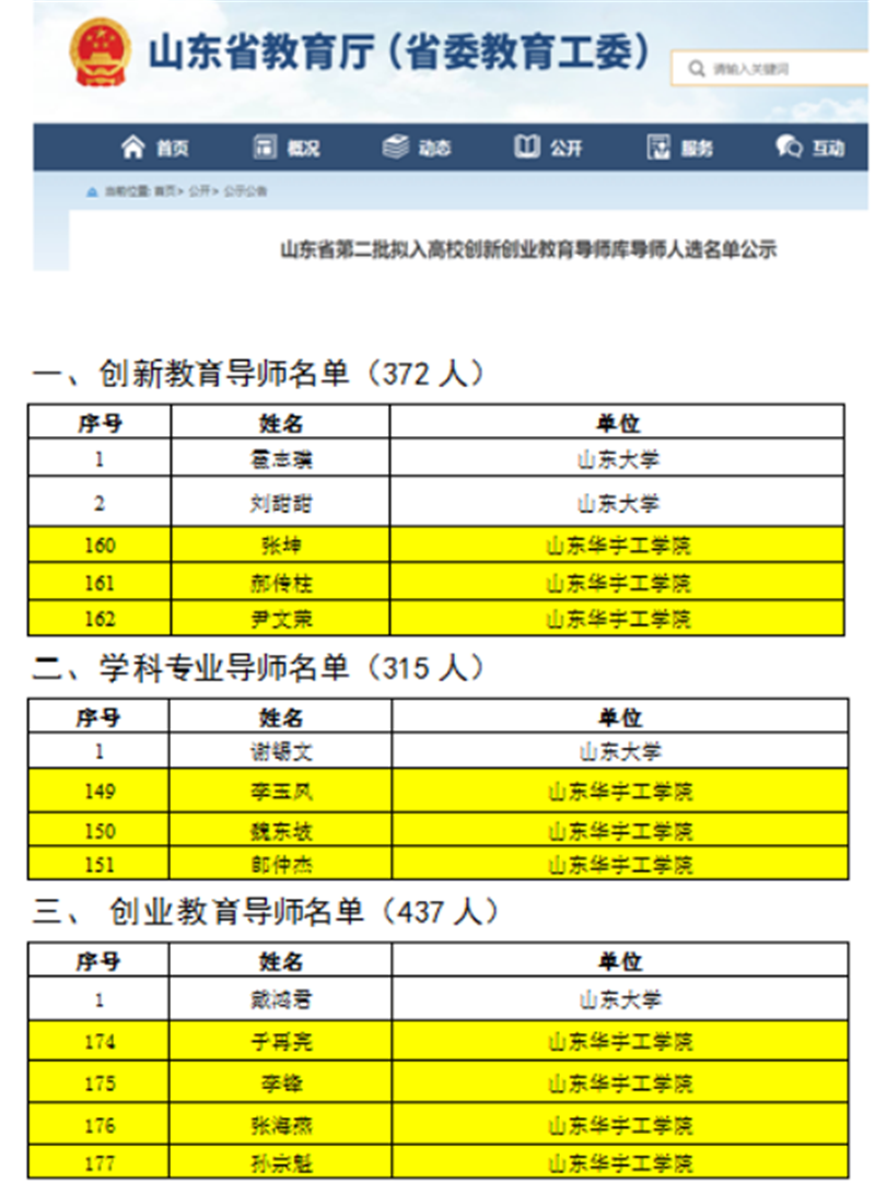 近日,山东省教育厅网站公示了“山东省第二批创新创业教育导师库”入选名单,公司张坤等10名导师入选,其中创新教育导师3名,学科专业导师3名,创业教育导师4名。