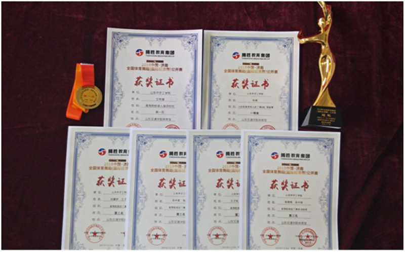 本次大赛由中国关心下一代工作委员会健康体育发展中心青艺办指导,中国济南全国体育舞蹈(国际标准舞)公开赛组委会举办。在高手如云的比赛现场,公司员工不畏强手,奋力拼搏,以扎实的基本功和优美的舞姿征服了评审和观众,艾艳慧同学获得高等院校单人单项恰恰第一名,张瑶获得16岁组新秀单人B组一等奖(等级赛),王子明、田建伊获高等院校拉丁B组第三名,孙中奕,张靖雨获得高等院校拉丁单项恰恰第三名,史秋雨获得高等院校拉丁单项伦巴第五名的好成绩。这是公司老员工艺术团拉丁队继CBDF中国杯国际标准舞巡回赛后获得的又一优异成绩。