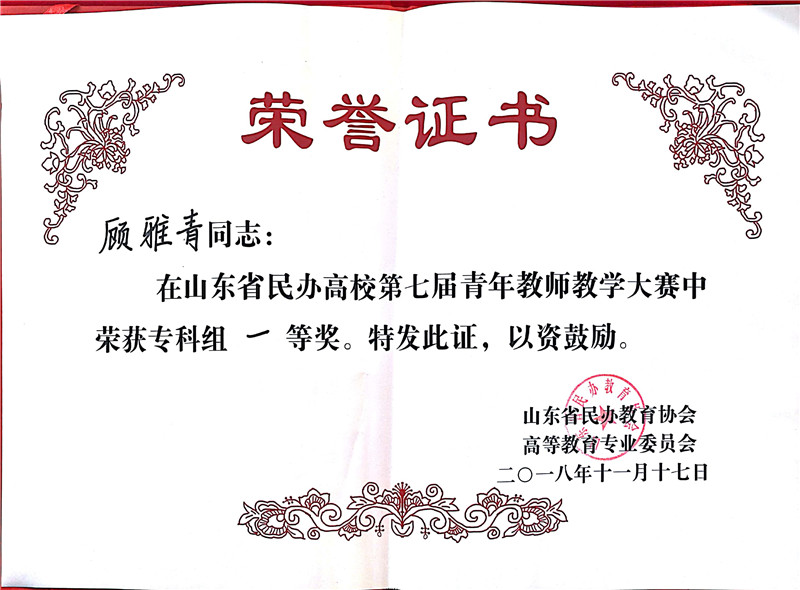 11月17日,山东省民办高校第七届青年教师教学大赛在济南英才公司举行。公司教师王日霞、顾雅青分别获得本、专科组一等奖。