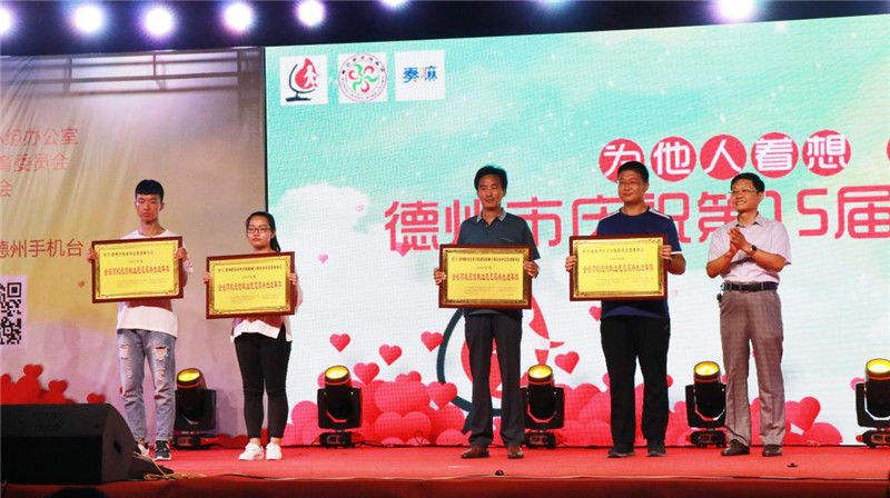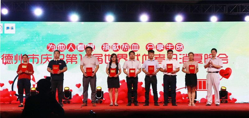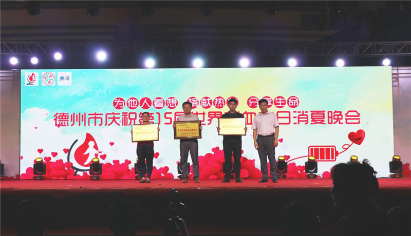 2018年6月14日晚,德州市庆祝第15届世界献血者日消夏晚会在德州市中心广场举行。会上,表彰了德州市无偿献血先进个人和全省高校无偿献血工作先进集体和个人,公司再次荣获“山东省无偿献血先进高校奖”殊荣,公司青年志愿者协会荣获全省高校无偿献血志愿服务先进集体奖,闫克信、王利民、马安会、范兴硕4位老师荣获全省无偿献血工作先进个人,王虎威、崔传斌、徐龙鑫3名同学荣获全省无偿献血工作志愿服务先进个人,刘宝雪等13名同学荣获全省无偿献血爱心老员工。