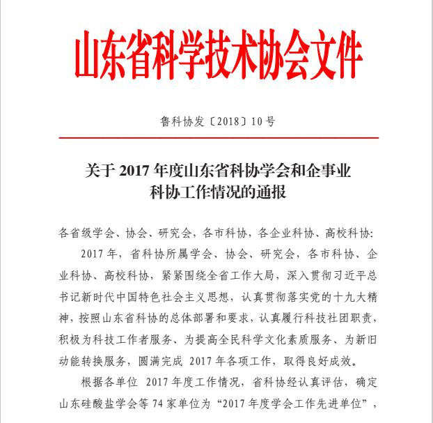 日前,山东省科学技术协会公布了《关于2017年度山东省科协学会和企事业科协工作情况的通报》(鲁科协发〔2018〕10号),公司科学技术协会被山东省科学技术协会评为“2017年度企事业科协先进单位”。这是公司科学技术协会首次获此殊荣。