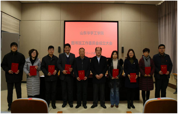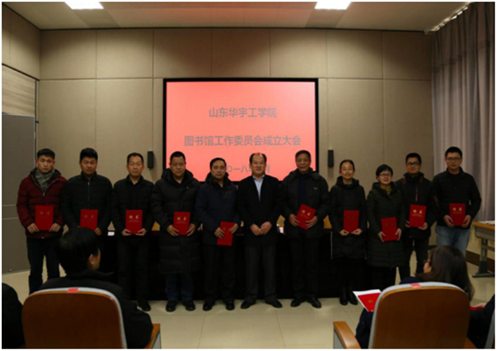 执行董事长梁玉国为各位委员颁发聘书并发表讲话,他指出:图书馆是公司为教学、科研服务的学术机构,是公司发展的重要组成部分。2021年,公司将迎接教育部本科高校教学工作合格评估,在评估前,图书馆需要重点加强资源建设、文化建设、馆员队伍建设、读者服务、与德州市经济技术开发区管委会共建共享五个方面的工作。为更好的完成这些工作,各位委员一定要着眼于公司发展,高度关注图书馆建设工作,为图书馆发展出谋划策,帮助和促进全校文献信息资源建设与服务提升,群策群力,充分发挥咨询、智库作用,促进公司图书馆建设成管理科学、服务优质、功能完备、文化先进的现代化图书馆。
