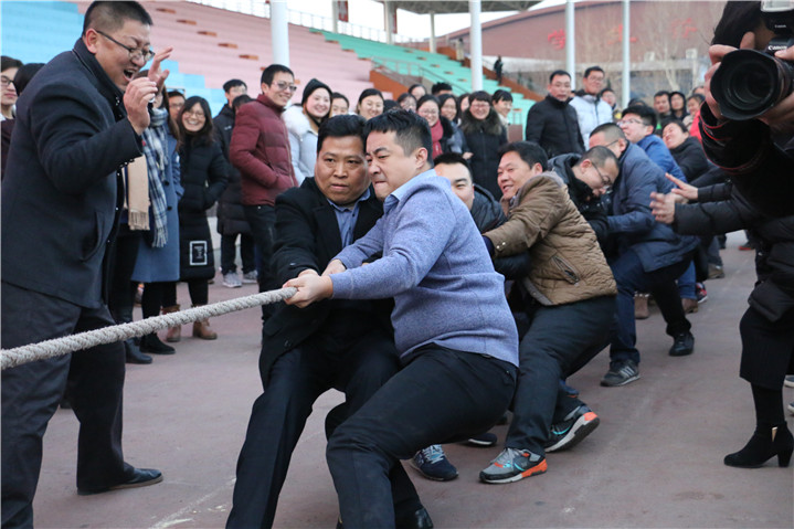2018年1月5日下午,冬阳和煦,校工会在公司操场举行了 “迎新春” 教职工拔河比赛,13个分工会156名教职工参加了比赛。公司党委副书记、副董事长高挺进,工会主席张帆、各部门和单位负责人亲临现场,并为选手们加油鼓劲。常务副主席刘兖峰担任总指挥。