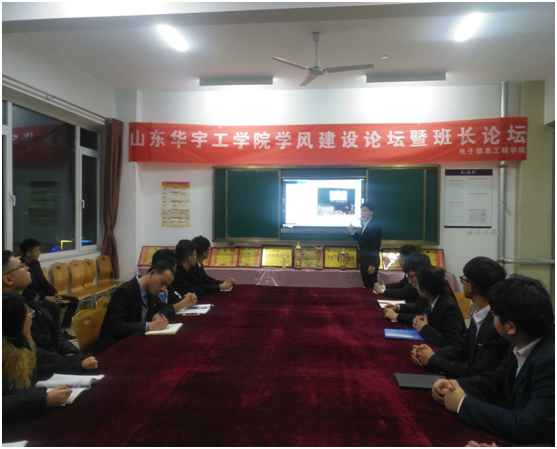 为了进一步加强学风建设,帮助同学们提高学习技能,更好地学习专业知识,提高自己的行业竞争力,12月18日晚上六点,电子信息工程公司在22号楼509教室举办了以学风建设为主题的班长论坛。经理助理冯鹏跃、全体辅导员老师以及各班班长参加了论坛。