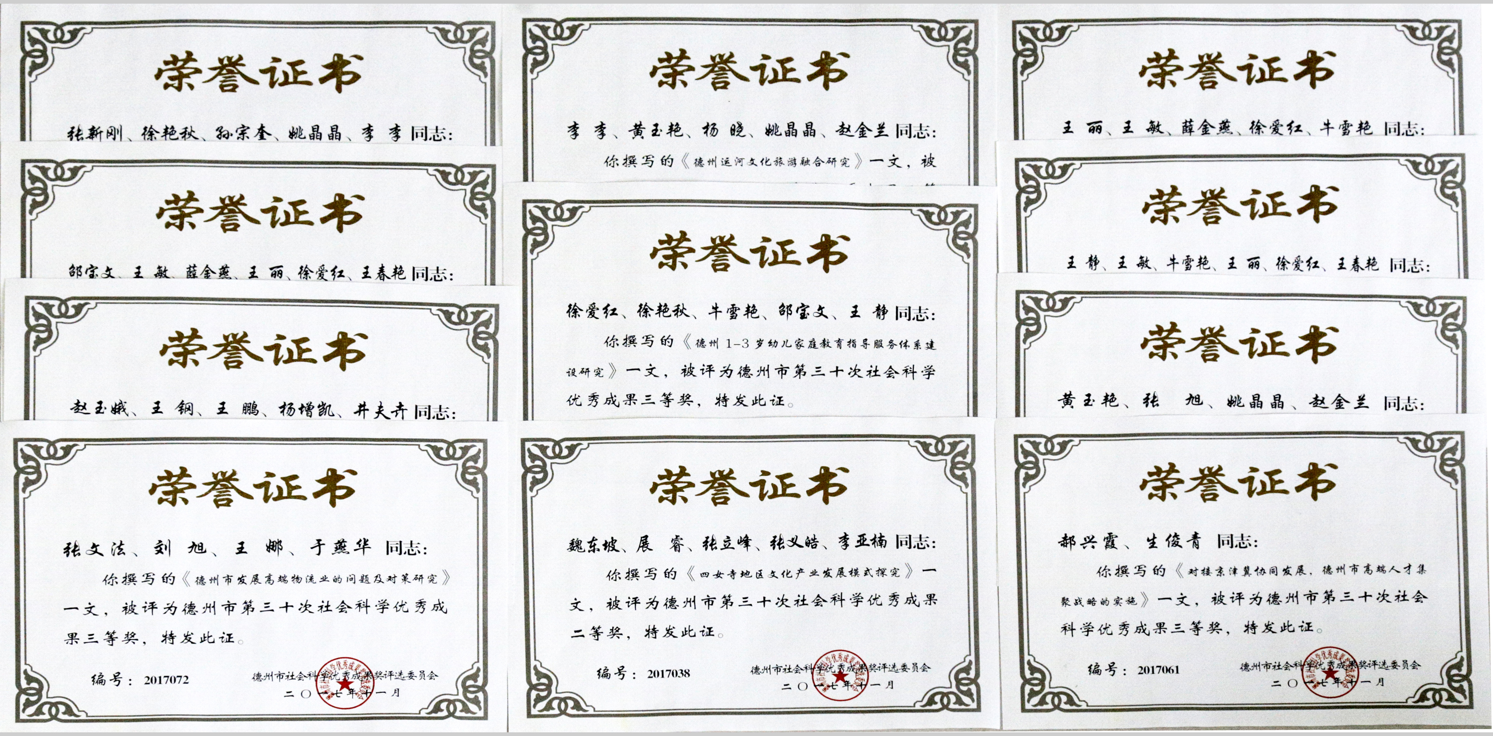 德州市社会科学优秀成果奖是德州市市政府颁发的全市社会科学研究最高成果奖。社会科学优秀成果评选活动每年举办一次,由德州市社科委负责承办,目前已累计开展了30次成果评选活动。