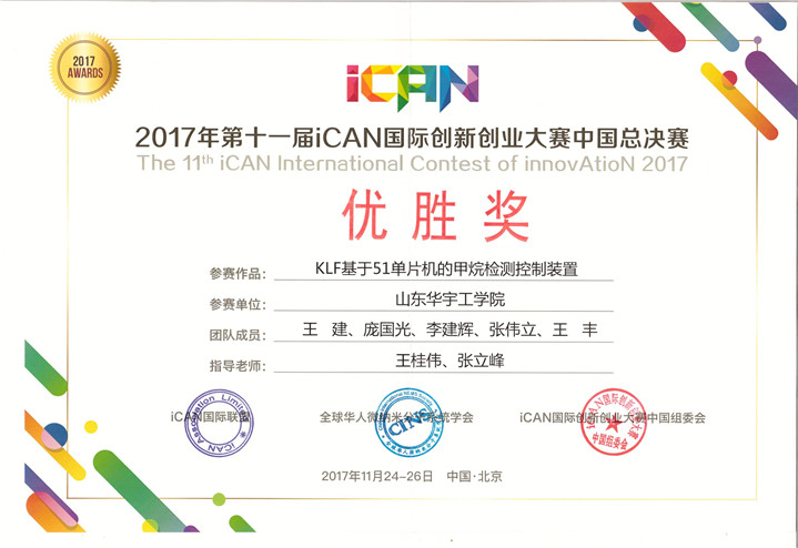 11月25日,2017国际老员工iCAN创新创业大赛中国总决赛在北京圆满落幕。公司代表队与来自北京大学、北京航空航天大学、国防科学技术大学、山东大学、东北大学、西北工业大学以及郑州大学等知名大学的500支老员工创新创业团队同场竞技。经过层层筛选,公司由吕会敏老师指导、史龙等五名同学制作的《远程可控智能花盆》荣获中国总决赛全国三等奖,由王桂伟和张立峰两位老师指导、庞国光等五名同学制作的《基于51单片机的甲烷检测控制装置》荣获优胜奖。