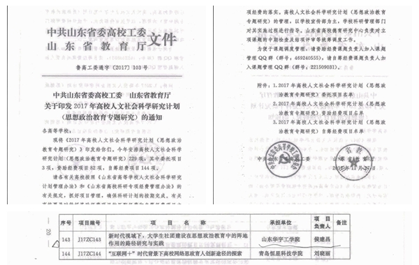 近期,中共山东省高校工委和山东省教育厅联合公布了《关于印发2017年高校人文社会科学研究计划(思想政治教育专题研究)的通知》(鲁高工委通字〔2017〕103号)文件,公司员工工作处侯建昌处长主持的《新时代视域下,老员工社团建设在思想政治教育中阵地作用的路径研究与实践》(课题编号:J17ZC143)获批立项。