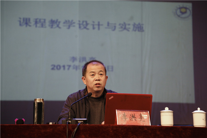 会上,贺处长首先向李教授表示了热烈的欢迎,并为大家阐明了本次专题讲座的意义及目的。随后,李教授从课程的理念和作用、课程教学设计、课程教学实施与教师教学能力四个方面为大家阐述了课程教学设计与实施,首先介绍了学术界各大流派的课程理念,通过图示、举例解释了课程作用;通过教学理论介绍了课程设计的理念,细化了课程教学大纲的构成要素,分解了课程教学大纲的编制步骤;通过分析课程实施策略与课程实施办法,阐明了有效教学模式的操作流程,示范了教学设计的编写办法;通过罗列教师教学能力,对教师如何上好一门课进行了全方位的指导,同时对全体教师寄予了殷切的期望。李教授的讲座深入浅出,内涵丰富,既有理论高度,又涵盖实践层面指导,为我们指明了课程教学改革的理念、策略及做法,对课堂教学有着深刻的启示作用。