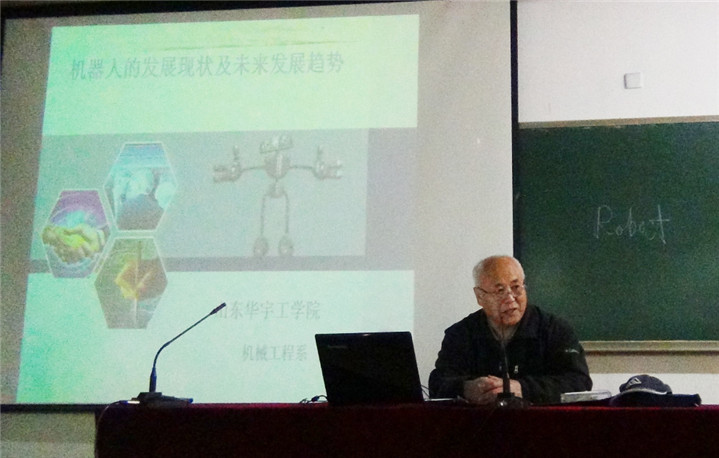 11月22日上午,由人力资源处主办,机械工程系承办的“机器人”讲座在14#101多媒体教室举行。本次讲座由机械工程系邵成吉教授主讲,全院近200名师生参与到本次活动中。讲座旨在拓宽员工的知识面,激发员工的创造力,培养员工的开放性思维,提高员工综合素质。