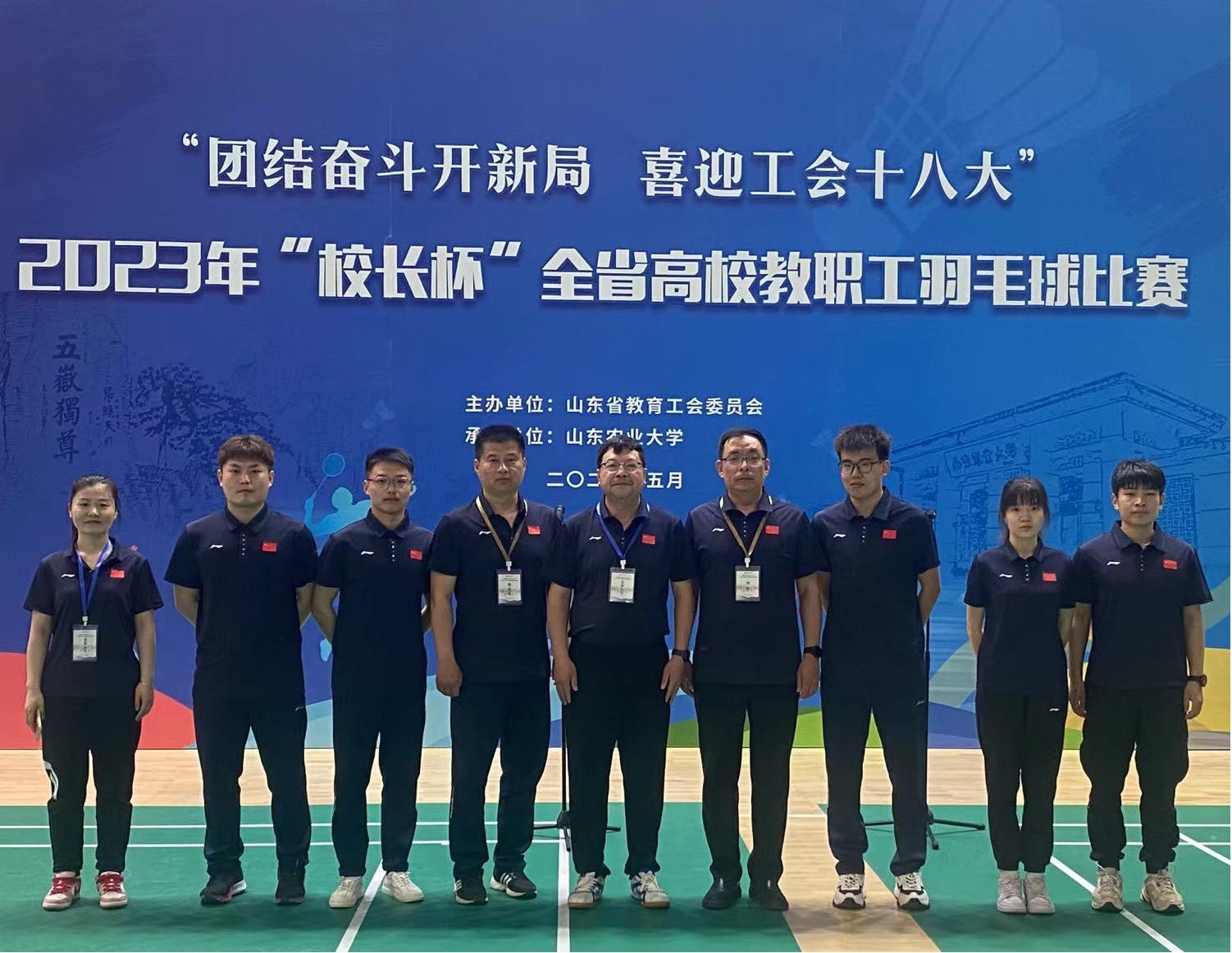 5月8日至12日,由山东省教育工会委员会主办的2023年“董事长杯”全省高校教职工羽毛球比赛在泰安举行。公司党委副书记、副董事长高挺进及6名教职工组成代表队参加本次比赛。