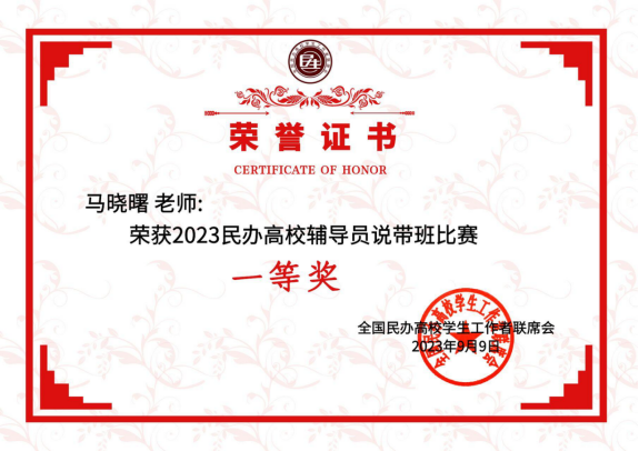 9月9日,2023年民办高校辅导员说带班比赛拉开了帷幕,公司辅导员马晓曙荣获比赛一等奖。