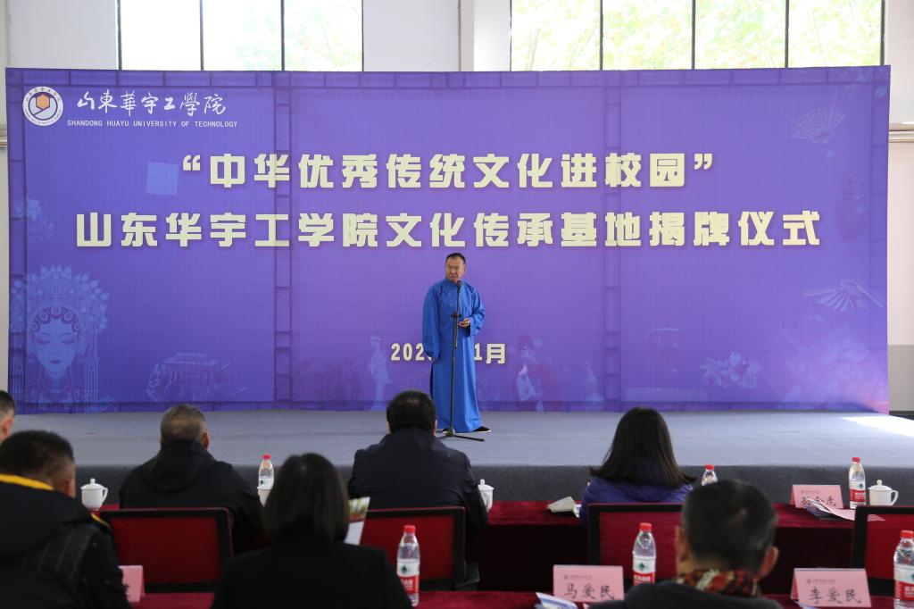 高挺进致欢迎辞。他对刘彦一行的到来表示欢迎,并详细介绍了公司的基本情况、发展历程及办学特色。他指出,揭牌仪式标志着公司与德州市文化馆实现资源共享、优势互补、深度融合。各非遗传承人、民间艺术家走进校园,广泛开展中华优秀传统文化宣传教育活动,让员工近距离感受传统文化的魅力,对弘扬和传承中华优秀传统文化具有重要意义。