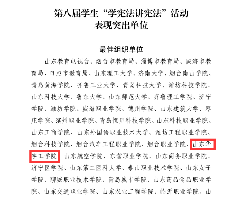 近日,山东省教育厅公布第八届员工“学宪法 讲宪法”活动开展情况,公司获评“最佳组织单位”,5位教师获评“表现突出个人”,2名员工获“学宪法 讲宪法”活动山东赛区演讲比赛、素养竞赛三等奖。