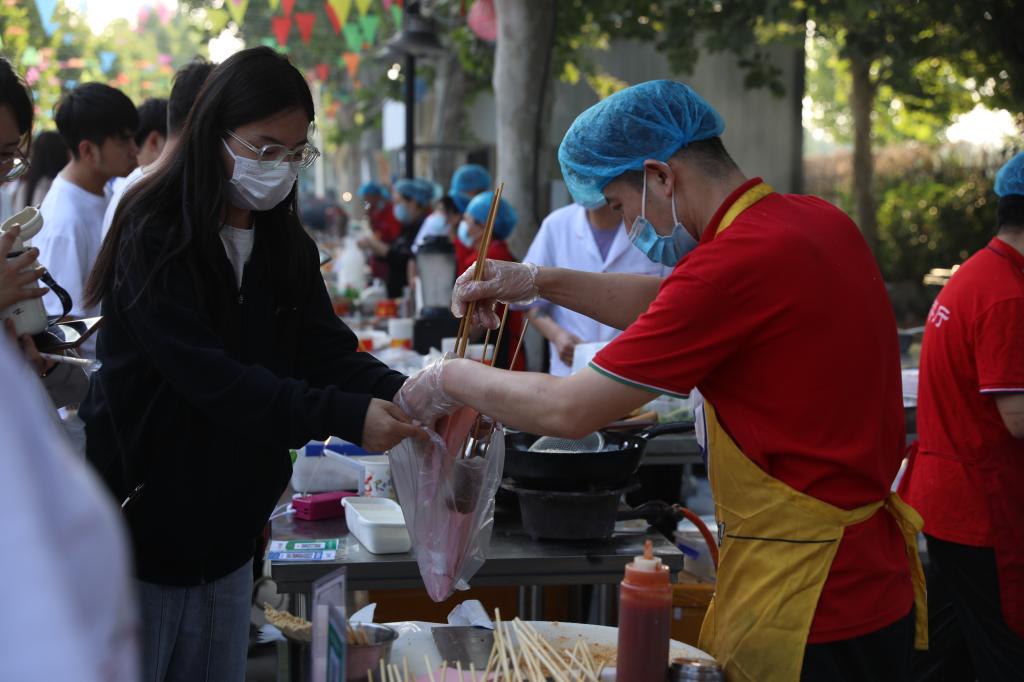 开幕式后,美食街现场人头攒动,参与师生人数达到2万余人次。据悉,活动现场有烧烤、小龙虾、炒酸奶等162个品种特色小吃。