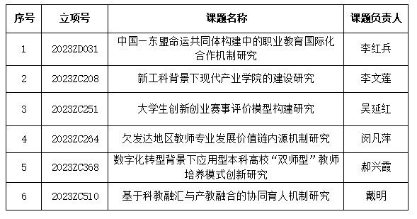 近日,山东省教育科学规划领导小组办公室发布了《关于2023年度山东省教育科学“十四五”规划课题立项的通知》( 鲁教规办〔2024〕8号),公司6项课题获批立项,其中,李红兵教授主持的《中国—东盟命运共同体构建中的职业教育国际化合作机制研究》立项重点课题。