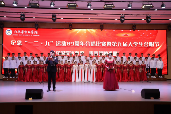 比赛现场,《在太行山上》《鼓浪屿之波》《我的祖国》等经典红色歌曲,抒发了华宇学子对党和祖国的热爱之情,对新中国伟大变化的赞美之情。大型群舞《保卫黄河》、大合唱《祖国不会忘记》《走向复兴》将演出推向高潮。最终,经过激烈角逐,经济管理公司获得本届合唱节一等奖。