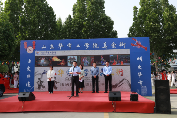 5月13日下午,公司“舌尖非遗,烟火华宇”户外美食街活动在泽虬湖畔开幕。董事长助理魏丰君、李海龙出席开幕式,后勤处、安全管理处、员工工作处负责人及师生代表参加开幕式。