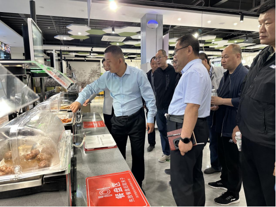 考察团一行还参观了公司智慧餐厅、六餐厅及生活服务区,现场观摩了“无感支付”“AI营养推荐”“智能炒菜机器人”等前沿技术的实际应用。