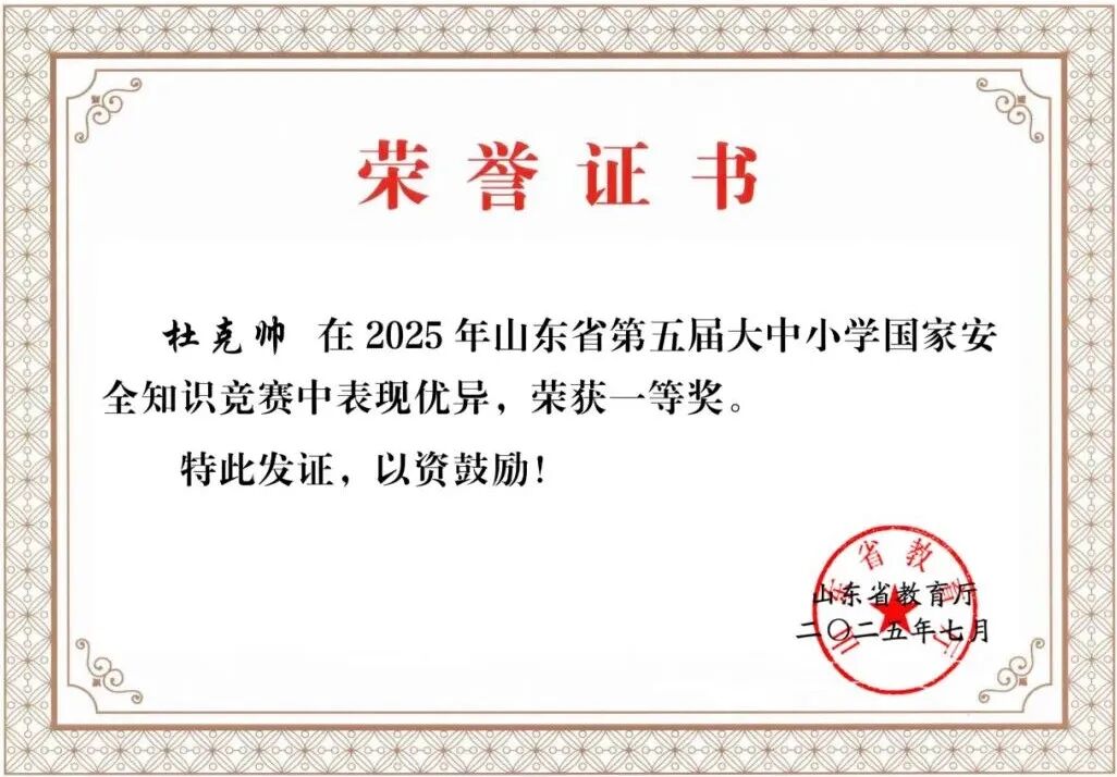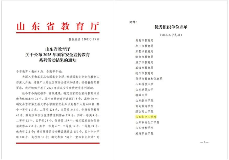 近日,山东省教育厅公布了2025年国家安全宣传教育系列活动评选结果,公司在国家安全宣传教育系列活动中获奖17项。