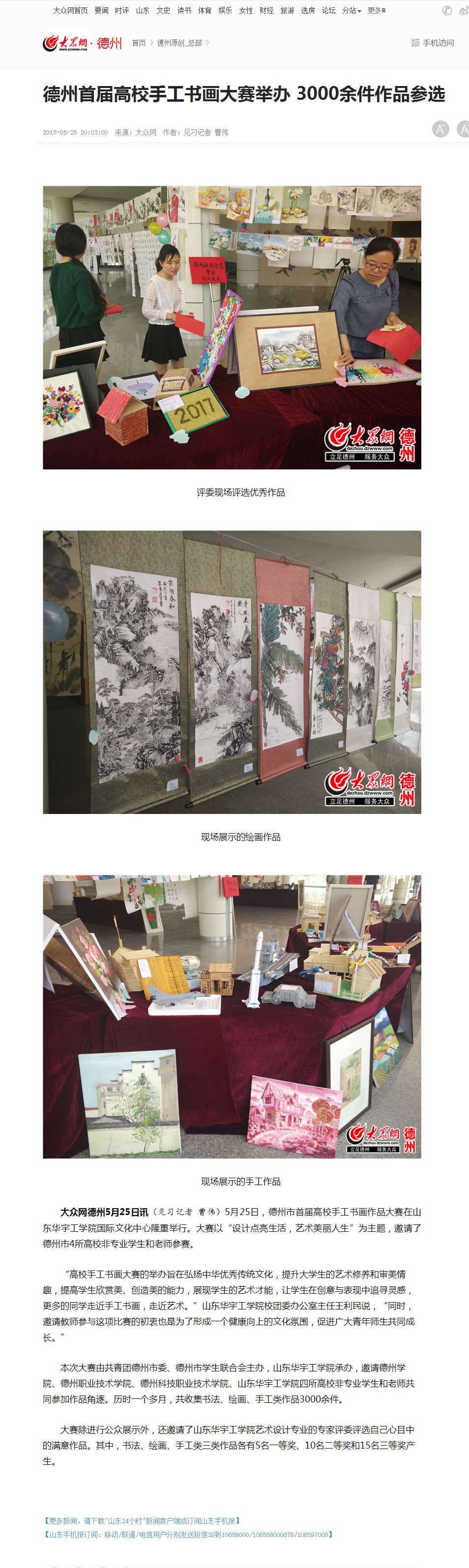 上一条: 华龙网:德州首届高校手工书画大赛举办