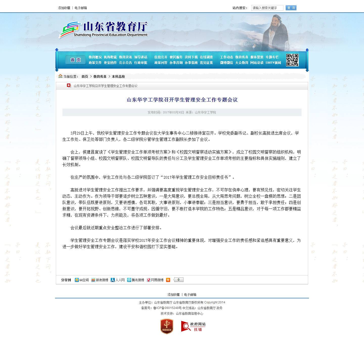 上一条: 山东省教育厅:华宇工公司“二三七”创新高校班级管理工作