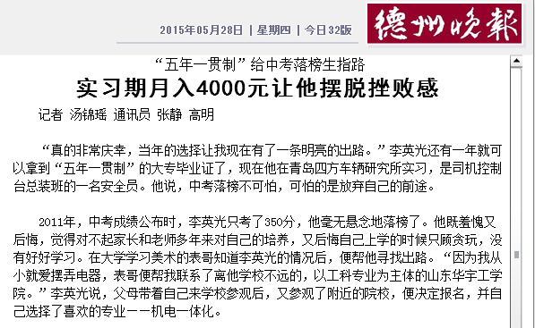 上一条: 齐鲁晚报:高职生年年增仍然供不应求