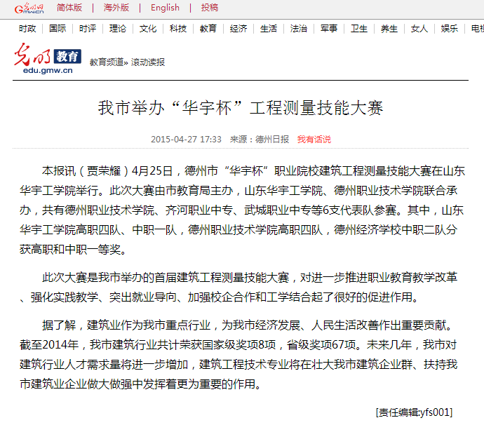 下一条: 德州日报:我市举办“华宇杯”工程测量技能大赛