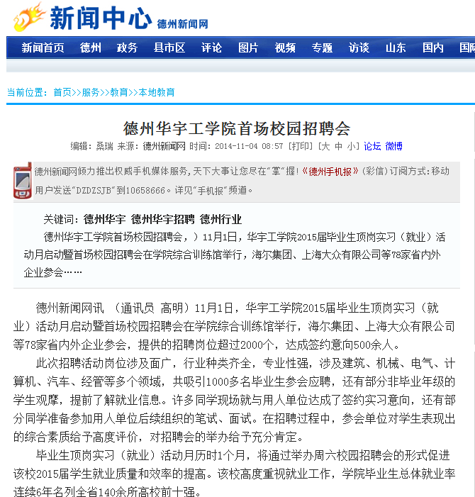 上一条: 德州之窗网:德州华宇工公司首场校园招聘会 500余人达成签约意向