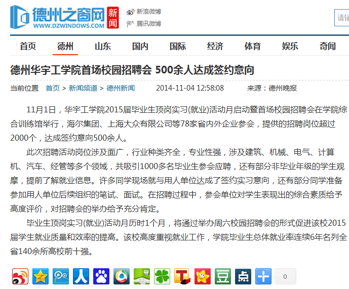 下一条: 德州新闻网:华宇工公司首场校园招聘会