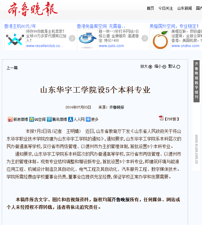 上一条: 德州新闻网:华宇工公司首批设置5个本科专业